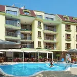 Deze accommodatie in Sunny Beach beschikt over kamers met een patio en een balkon, evenals geluiddichte ramen voor uw gemak. Ze zijn voorzien van een inloopdouche, een badkuip en een wastafel, evenals een haardroger en handdoeken.